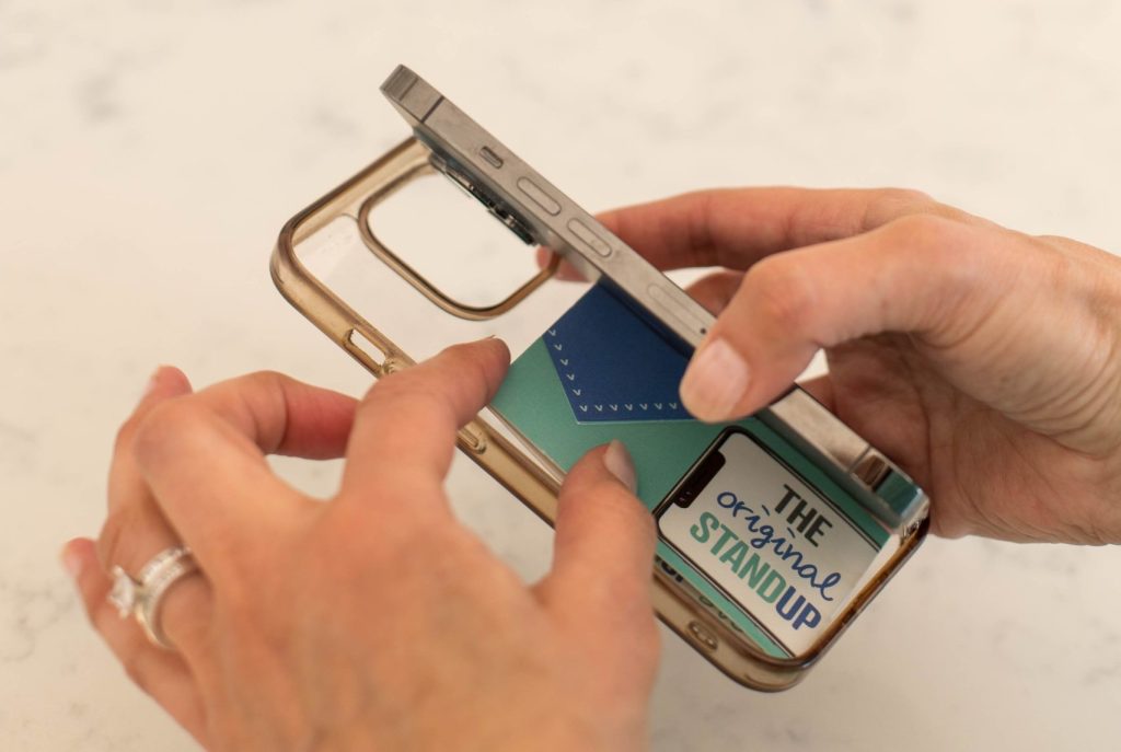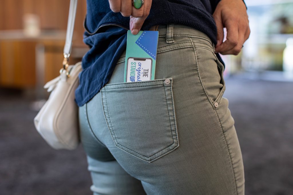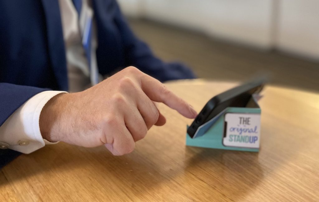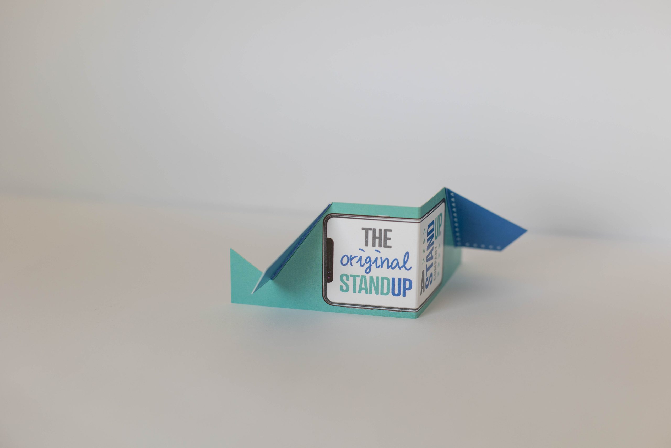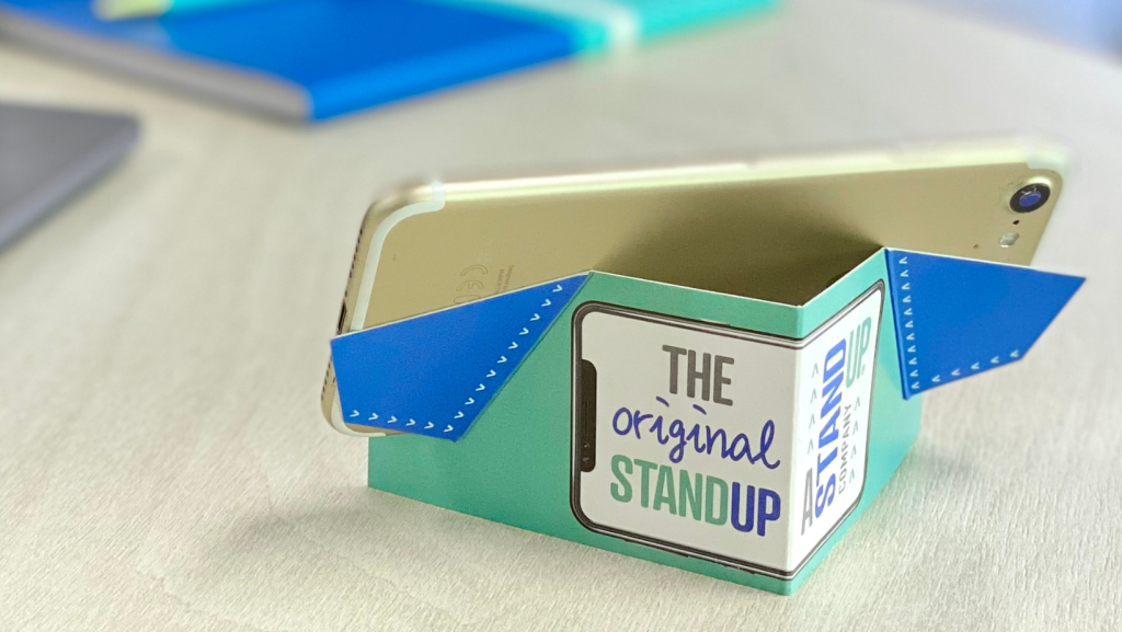 You’ll never have to hold your mobile phone again or try and find that plastic cumbersome stand some company gave you….simply grab a STANDUP, fold in half, fold back its wings, pop on your phone, and enjoy.